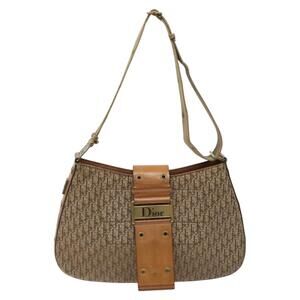 DIOR Trotter Canvas Shoulder Bag Beige Gold