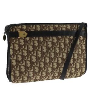 DIOR Trotter Canvas Shoulder Bag Beige Gold