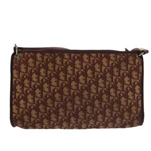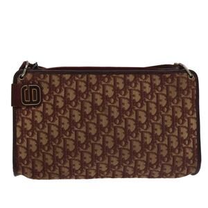 DIOR Trotter Canvas Shoulder Bag Beige Wine Red Gold