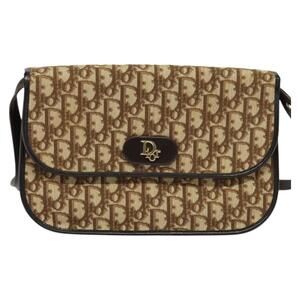 DIOR Trotter Canvas Shoulder Bag Brown Gold