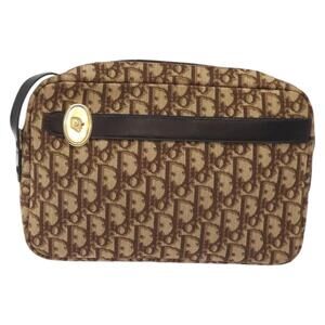 DIOR Trotter Canvas Shoulder Bag Brown Gold