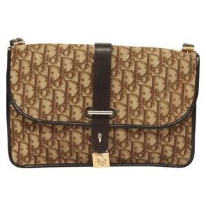 DIOR Trotter Canvas Shoulder Bag Brown Gold