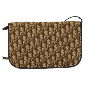 DIOR Trotter Canvas Shoulder Bag Brown Gold