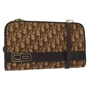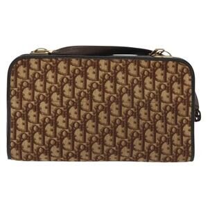 DIOR Trotter Canvas Shoulder Bag Brown Gold