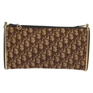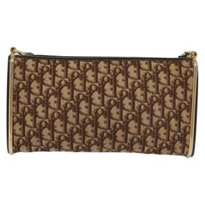 DIOR Trotter Canvas Shoulder Bag Brown Gold