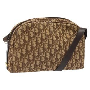 DIOR Trotter Canvas Shoulder Bag Brown Gold