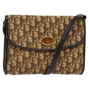 DIOR Trotter Canvas Shoulder Bag Brown Gold