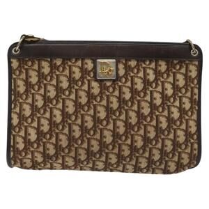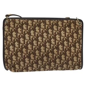 DIOR Trotter Canvas Shoulder Bag Brown Gold