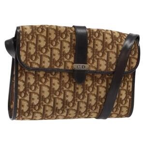DIOR Trotter Canvas Shoulder Bag Brown Gold