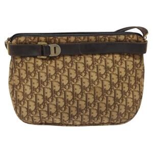 DIOR Trotter Canvas Shoulder Bag Brown Gold