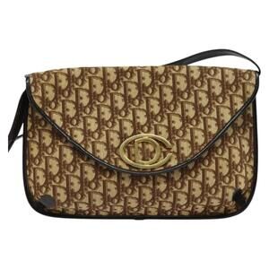 DIOR Trotter Canvas Shoulder Bag Brown Gold