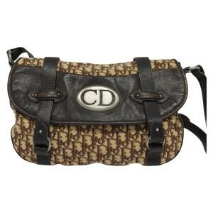 DIOR Trotter Canvas Shoulder Bag Brown Silver