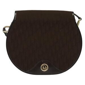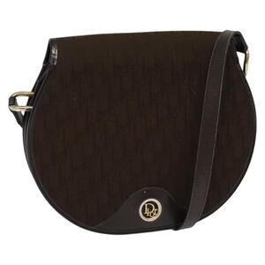 DIOR Trotter Canvas Shoulder Bag Dark Brown Gold