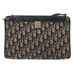 DIOR Trotter Canvas Shoulder Bag Navy Gold