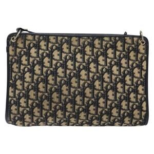 DIOR Trotter Canvas Shoulder Bag Navy Gold