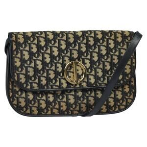 DIOR Trotter Canvas Shoulder Bag Navy Gold