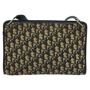 DIOR Trotter Canvas Shoulder Bag Navy Gold