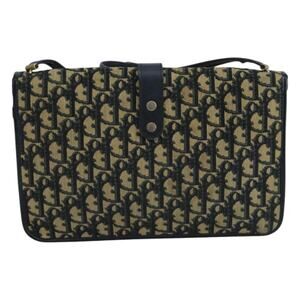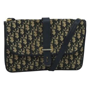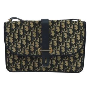 DIOR Trotter Canvas Shoulder Bag Navy Gold