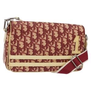 DIOR Trotter Canvas Shoulder Bag Red Silver