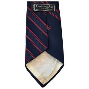 DIOR Vintage Luxury Navy & Red Striped Men’s Tie 56”L