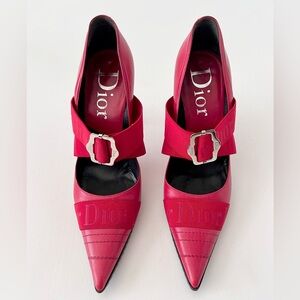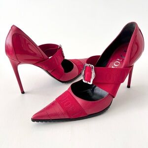 DIOR | Vintage Red Leather Pointed Cross Over Elastic Bandage Pumps EU 37.5