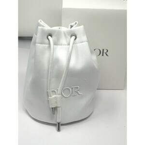DIOR White Drawstring Cosmetic Makeup Pouch Bag Dior Beauty White DCosmetic Bag