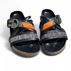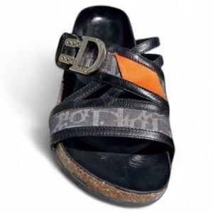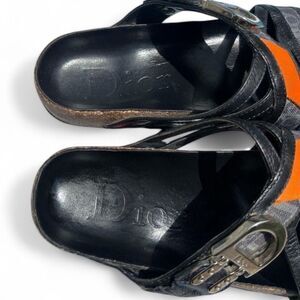 DIOR Dark Blue Leather & Trotter 'D' Buckle Cross Strap Flat Sandals Siz…