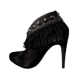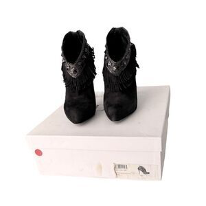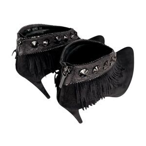 DIOR Fringe Detail Crystal Studs Trim Suede Ankle Boots in Black Size 38 IT