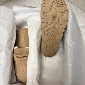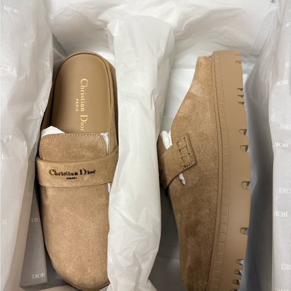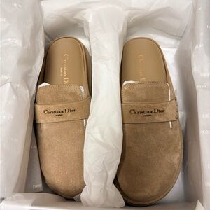 Elegant Dior loafers in beige suede. Slip-on design for easy wear. Perfect for stylish outings.