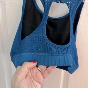 DIP Active Yoga Blue sports bra LARGE Vented Open Racerback Womens