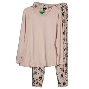 DIP Light Pink Woodland Animal Long Sleeve & Pant Pajama Set Women's XL
