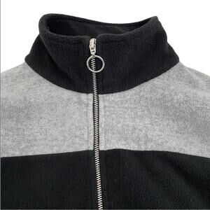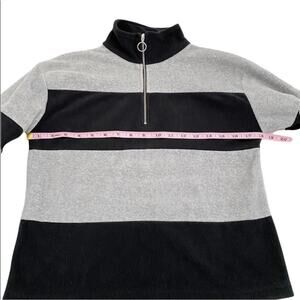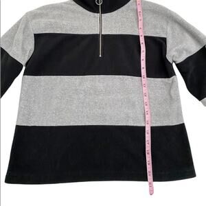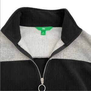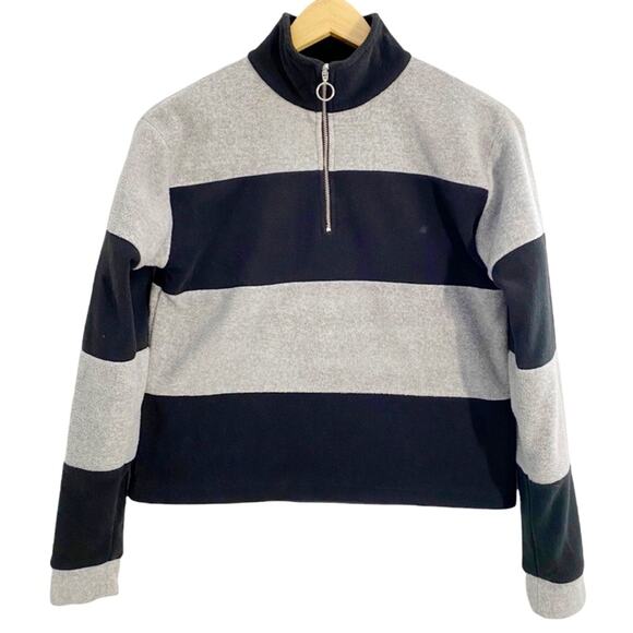 DIP Women’s Black & Gray Stripe 1/4 Zip Up Fleece Pullover, Size XS