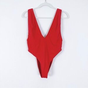 DIPPIN DAISY'S Cheryl One-Piece Swimsuit Red Plunge minimalist romantic size S