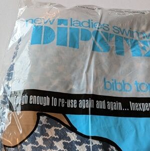 The Dipsters Women's Bib Top and Bikini style has a drawstring bib top that ties around the neck and back. The bikini shorts have elastic around the waistband and legs to provide a secure comfortable fit.