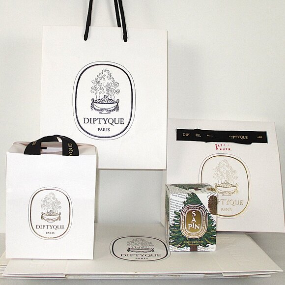 Big bundle of DIPTYQUE gift bags & boxes. Perfect for packing gifts or styling photos.