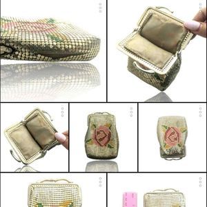 DISCOLEMONADE Vintage Festival Rose Enamel Gold Mesh Purse Clutch Large Coin Bag