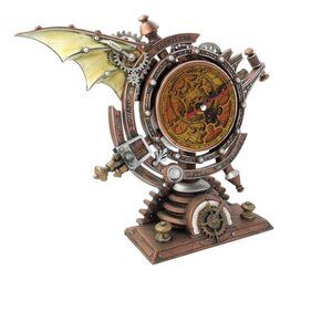 Professor Stormgrave's patent celestial chronometer, mapping the forces that govern the passing of eternity. A cast resin, steampunk style clock; hand painted and antiqued metallic finish.