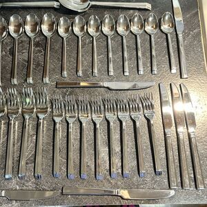 Very clean! Beautiful and hard to find discontinued Mikasa MIS34 18/10 stainless flatware set.