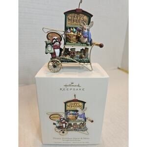 2007 Hallmark Keepsake "Hoppy Holidays Decor & More" Kringlewood Farms collection, Features skunk and a rabbit operating a Metal vending cart. Artfully designed by Tracy Larsen. New in Original box and packaging. Owned by member of Collector's Club.