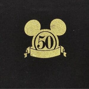 DISNEY 50th Anniversary Mickey Mouse Amber Rhinestone Embellished Cotton T-Shirt
