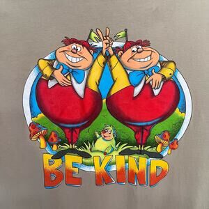 Tan Disney Alice in Wonderland Tweedle Dee and Tweedle Dum Be Kind Graphic Short Sleeve Tee Shirt