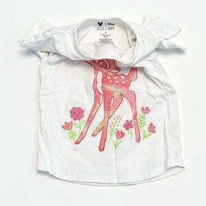 DISNEY BAMBI White Tee with Sequins & Floral Design KIDS Girls 2T - SO CUTE!
