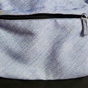 This Disney backpack combines playful charm with practicality, featuring iconic embroidered Mickey character patches on a sleek blue canvas. Approximate Dimensions: 18"X12"X4". It has a zipped main enclosure and an outer pocket. An inner pocket for laptop.
