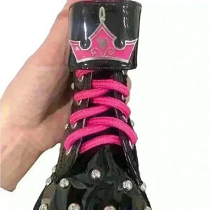 DISNEY CRUELLA DE VIL Black Patent Leather Studded Kids Boots Shoes Pink Size 7. Excellent condition. Like new. Worn only to try on. 2nd size tag cut out.