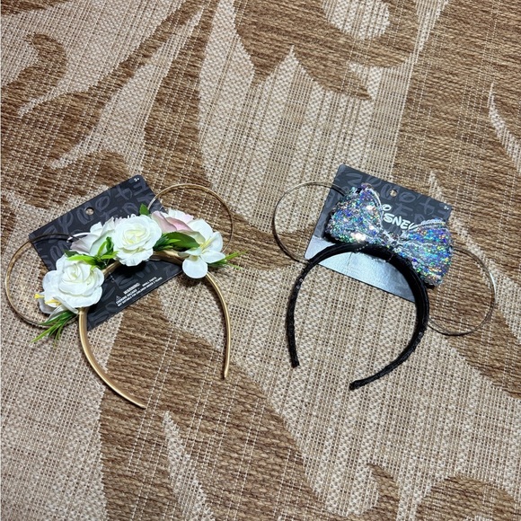 DISNEY EARS - 2 pieces! Gold/Silver and Gold/Floral Mickey Mouse Disneyworld NEW