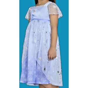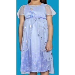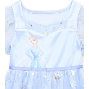 Inspired By Disney Princess, Elsa From Frozen. A Fantasy Nightgown With A Fit And Flare Silhouette, That Has Mesh Trim And Puff Sleeves. Along With A Layered Mesh Skirt And Silver-Tone Metallic Snowflakes And Elsa Graphic. Use For Bedtime, Sleepovers And Everyday Dress-Up Playtime.