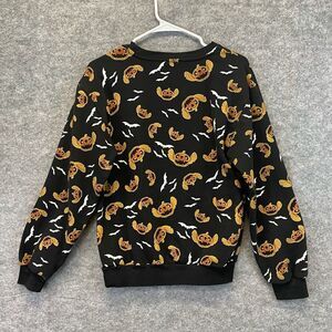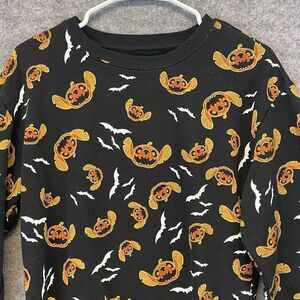 DISNEY Sweatshirt Junior Small Black Stitch Bats Pumpkins Long Sleeve Halloween
