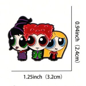 ITEM DESCRIPTION: Brand new, unused enamel trading pin from the Disney movie Hocus Pocus featuring the Sanderson Sisters. Measures approx. 1.25 in. W x 0.94 in. H. Super-cute for the Hocus Pocus fan!