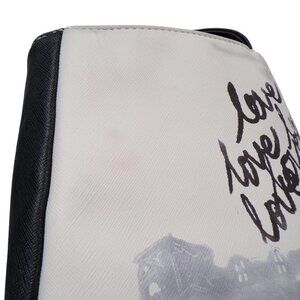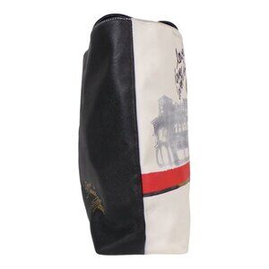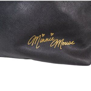 Black leather tote bag with Disney Minnie Mouse sitting at castle. Love love love! Minnie Mouse signature on back. 2 compartments inside. One zippered.