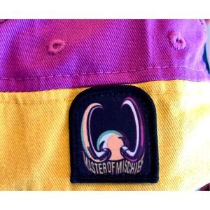 DISNEY PARKS + MARVEL licensed "LOKI" Baseball Snapback Cap. One size with adjustable plastic backstrap. Are you a fan of the Master of Mischief? This cap is 100% cotton (twill). It has a curved bill and embroidered eyelets. "Master of Mischief" patch on side. Raised embroidered "LOKI" logo on front. MSRP $30. This would make a great gift and it's NWT!